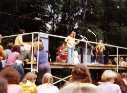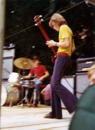 | So spielte man mehr und mehr in Jugend- und Gemeindehäusern, auf Straßenfesten und Festivals. Höhepunkte damals: Vorgruppe der Kölner Band "Triumphirat" in der Merkelhalle und Vorband der Deutschrock-Band "Eulenspiegel" im Merkelpark. (siehe Bilder) | ||